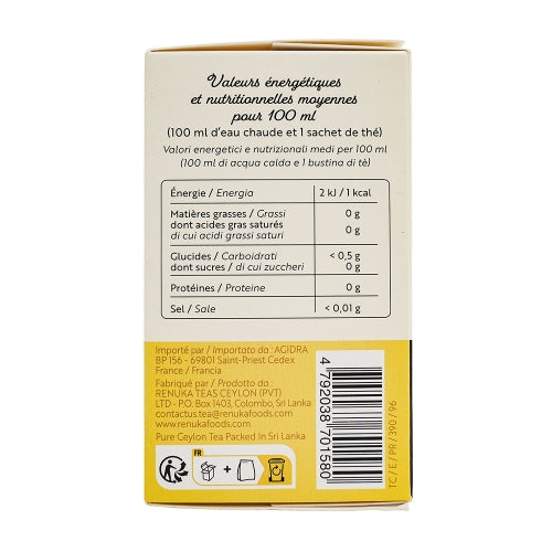 Thé noir 80 %, réglisse 10 %, arôme naturel de vanille 10 %